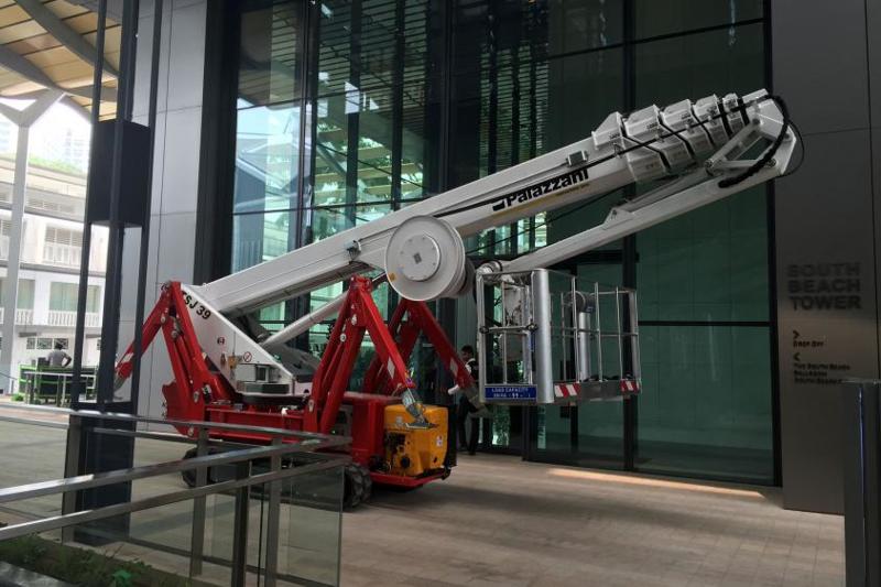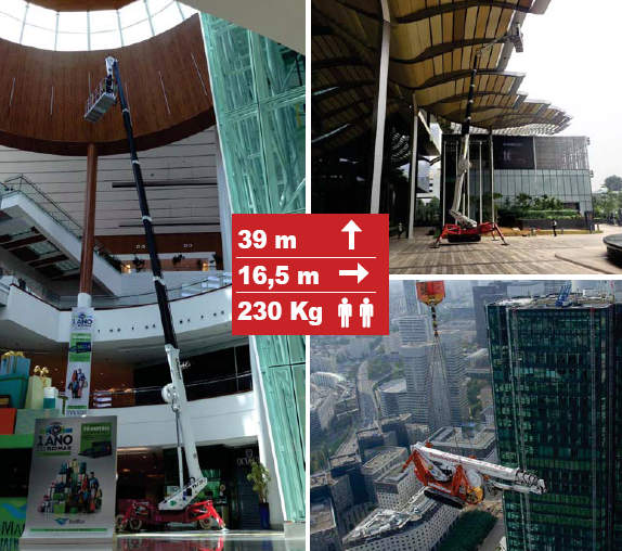 · TSJ39蜘蛛车支腿可以单独旋转在3个不同的位置,自动自调平5节伸缩臂同时控制臂铰接上保证高空中的灵活性和精确度。